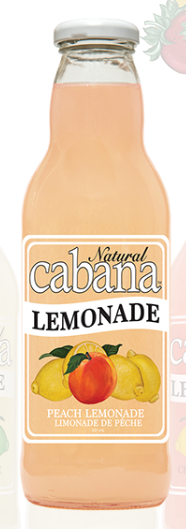 CABANA LEMONADE PEACH 591ML. Cabana Peach Lemonade is a delightful, all-natural summer classic. Sweet peach perfectly paired with tart lemonade As with all of our lemonades, there is a significant reduction in calories, without the use of artificial sweeteners.